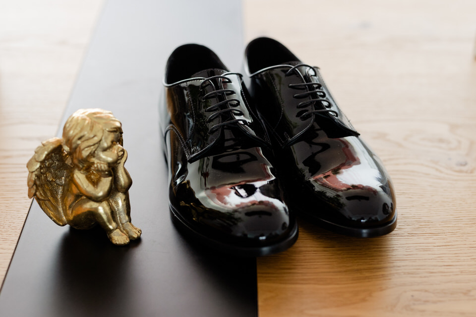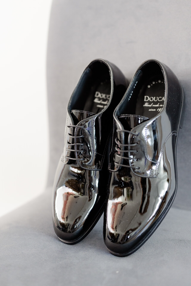 Το μαύρο smoking και τα λουστρίνι παπούτσια έκαναν την τέλεια αντίθεση με το πιο rustique περιβάλλον του Πύργου,