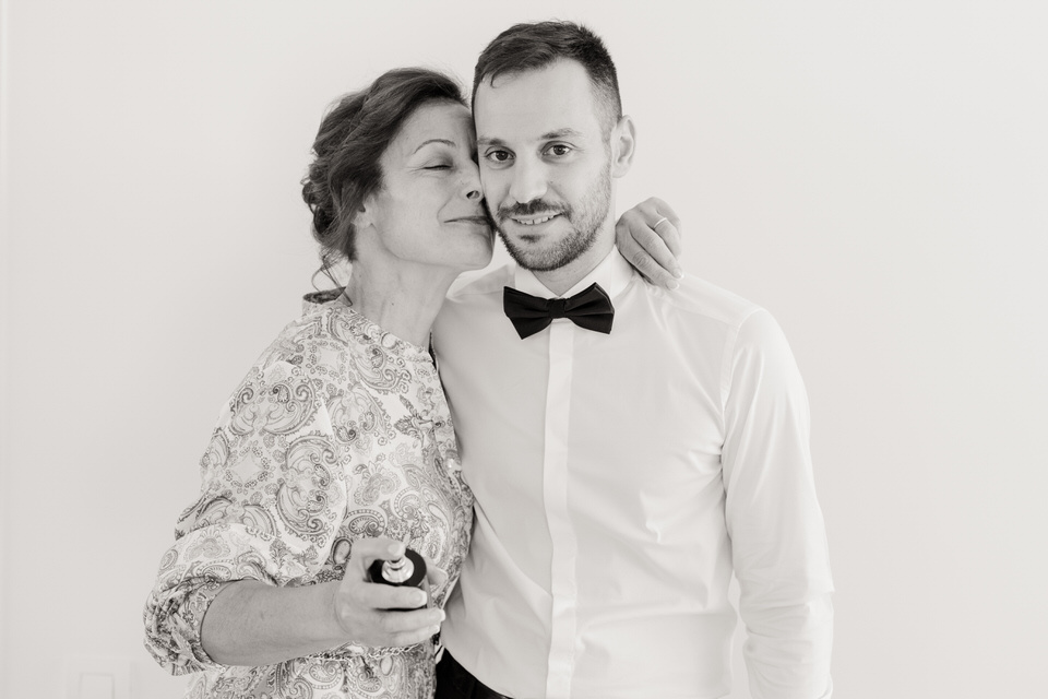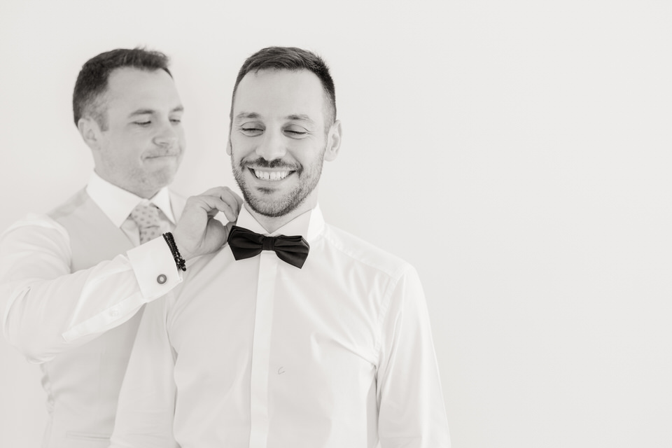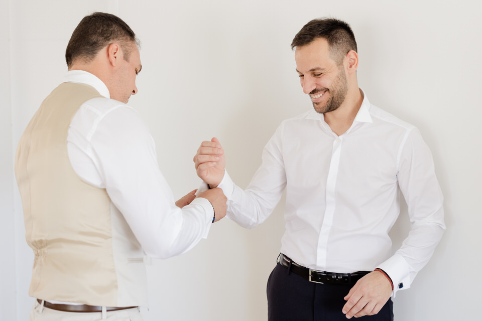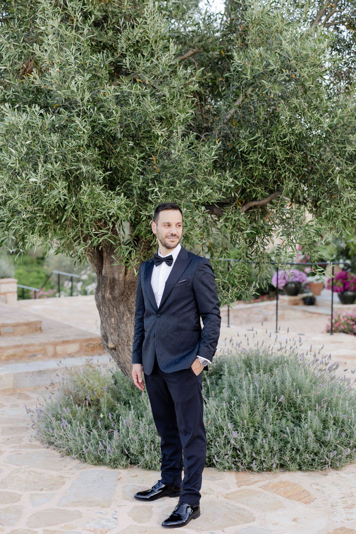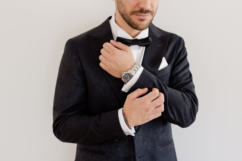 Από την άλλη πλευρά, ο γαμπρός επέλεξε την κλασική κομψότητα.