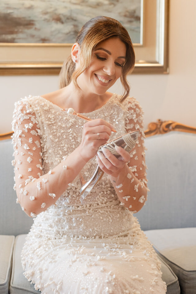 Για τη νύφη, η ατμόσφαιρα ήταν γεμάτη “Good Vibes”, όπως μαρτυρούσε και το καθρεφτάκι της.