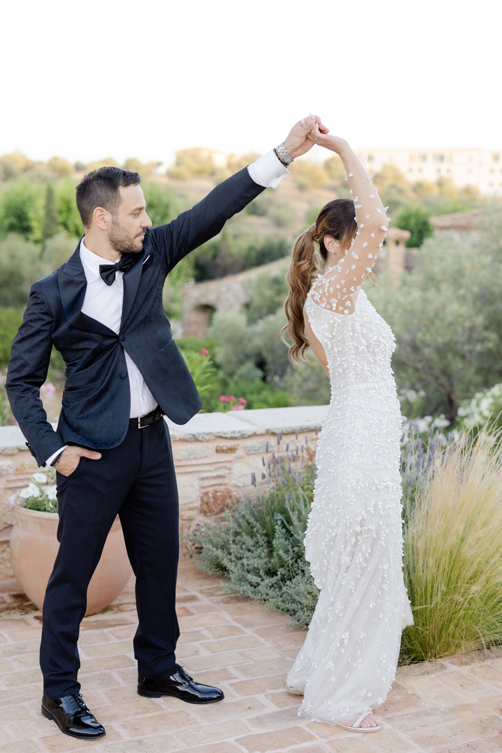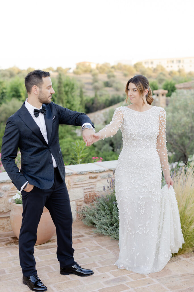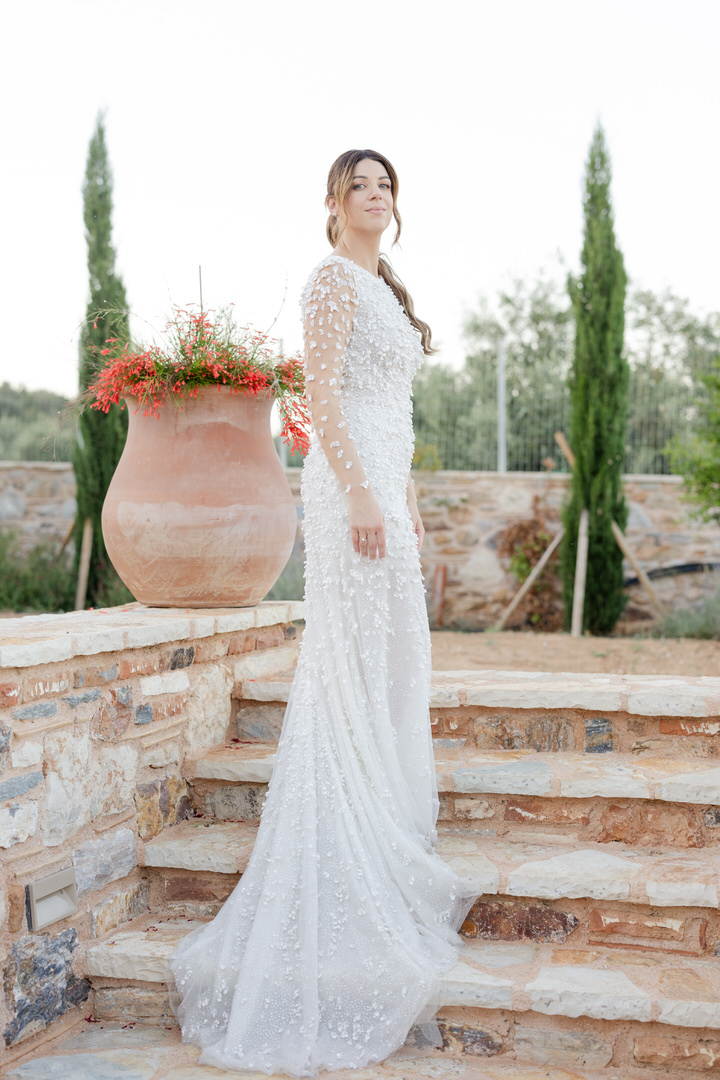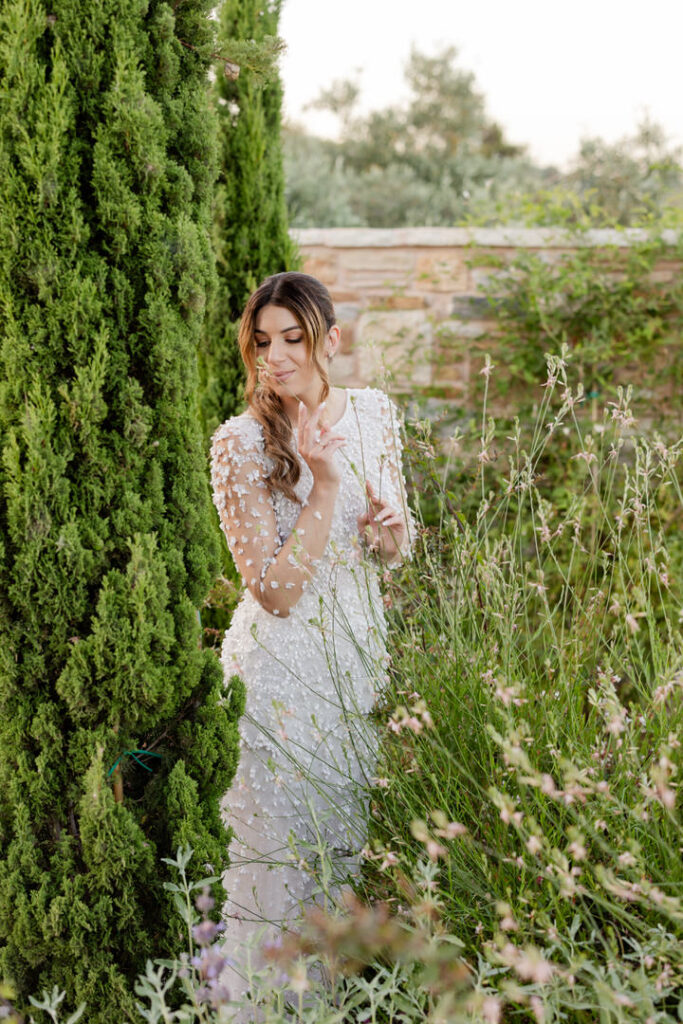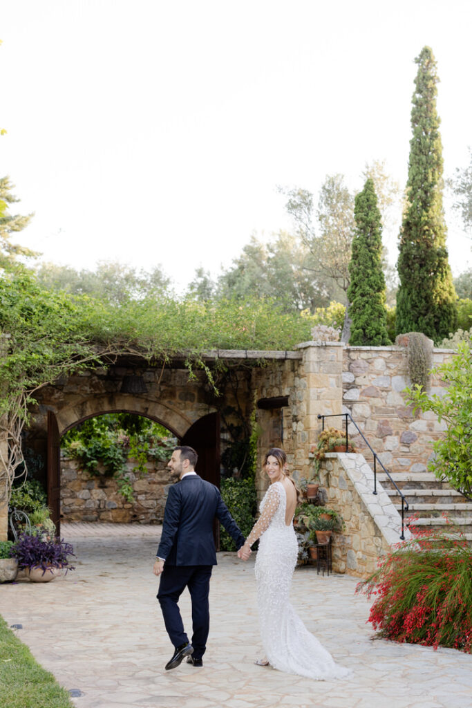 Τα ψηλά κυπαρίσσια, οι πέτρινοι τοίχοι και ο αμπελώνας λειτούργησαν ως το τέλειο background.