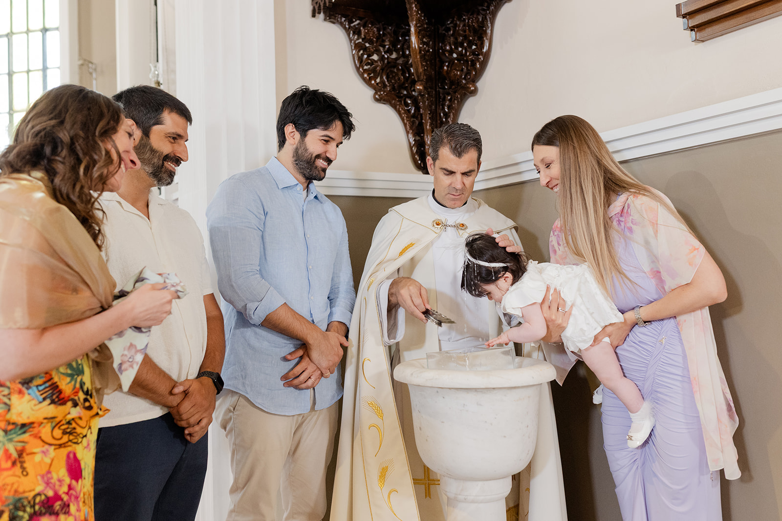 Εκεί η τελετή βάπτισης συνδύασε την ιερότητα της Δυτικής παράδοσης με την ανεπιτήδευτη κομψότητα.