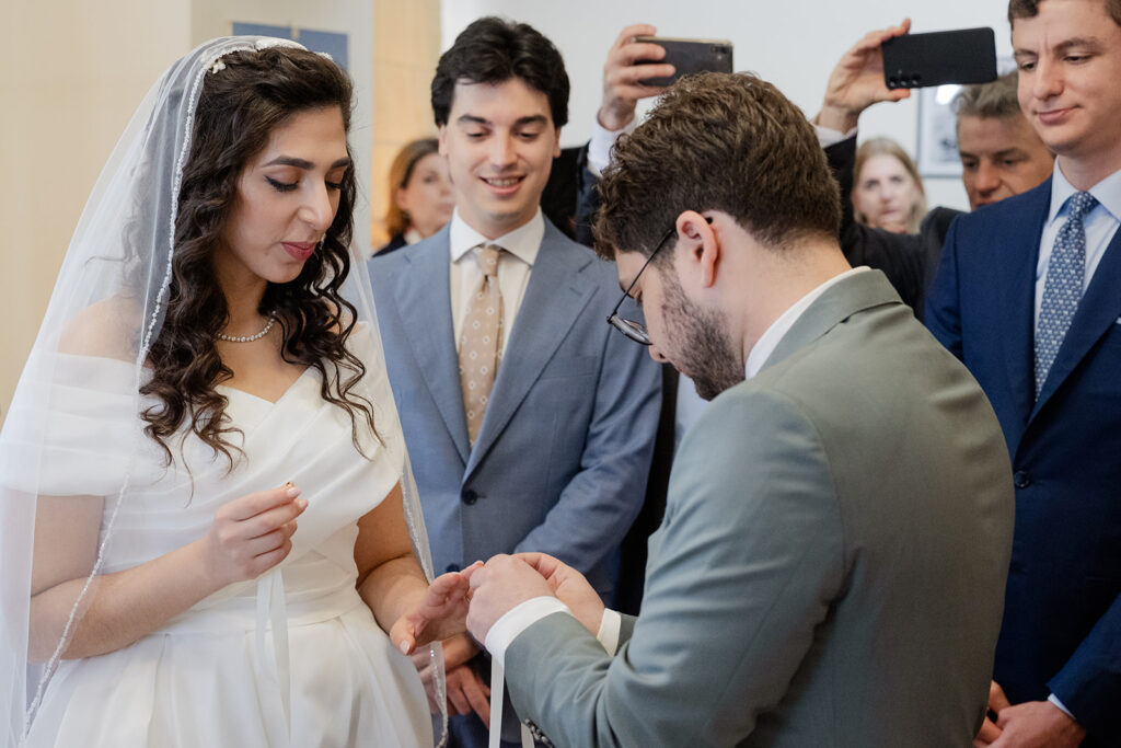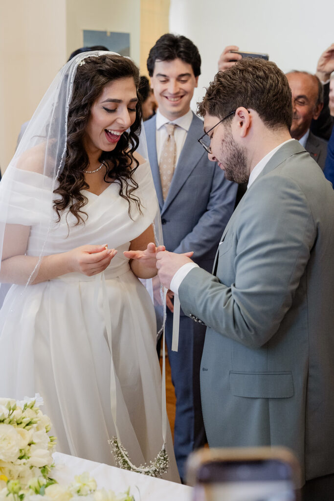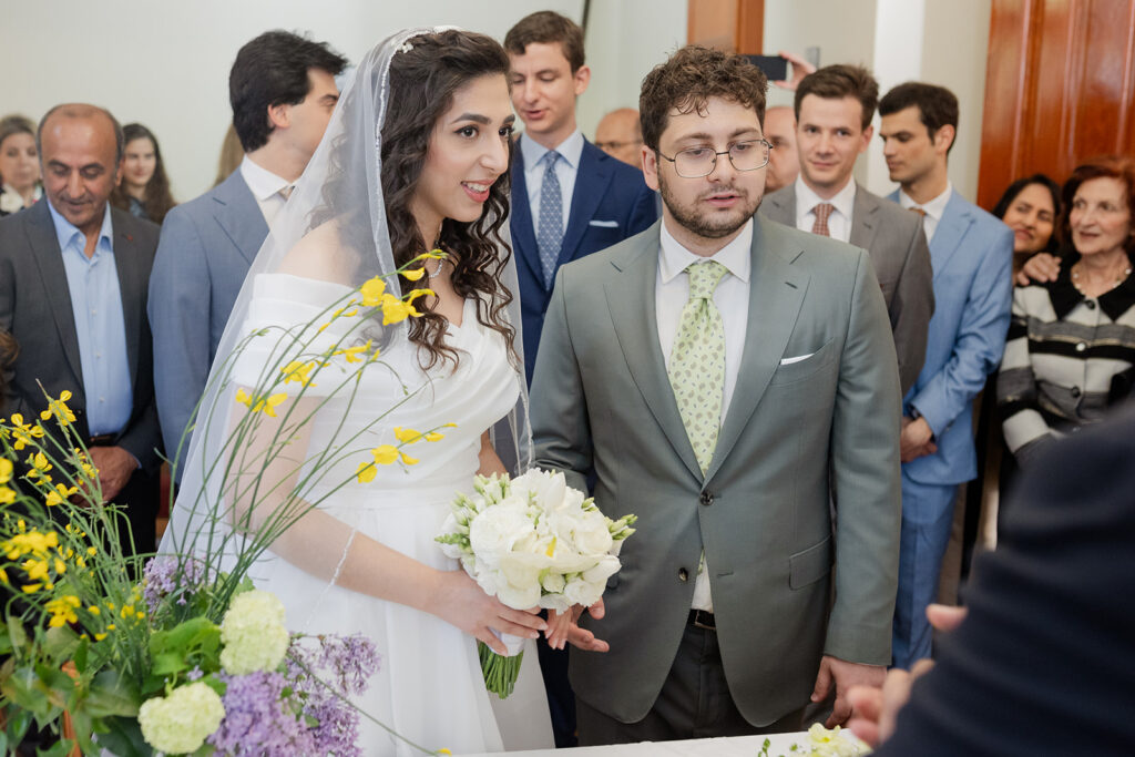 Το ιστορικό βάρος του κτιρίου έδωσε στην τελετή μια ιερότητα και συγκίνηση, που σπάνια συναντάς κανείς σε πολιτικούς γάμους.