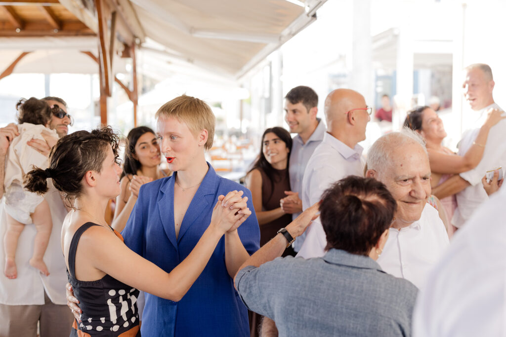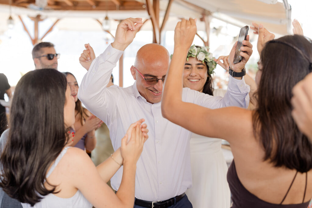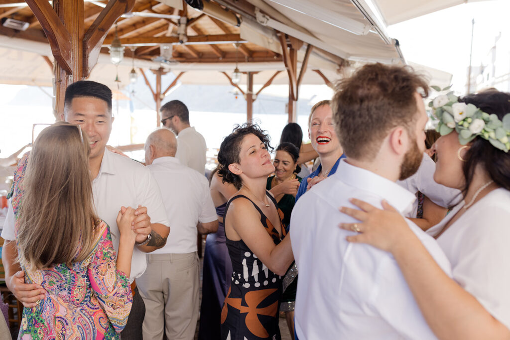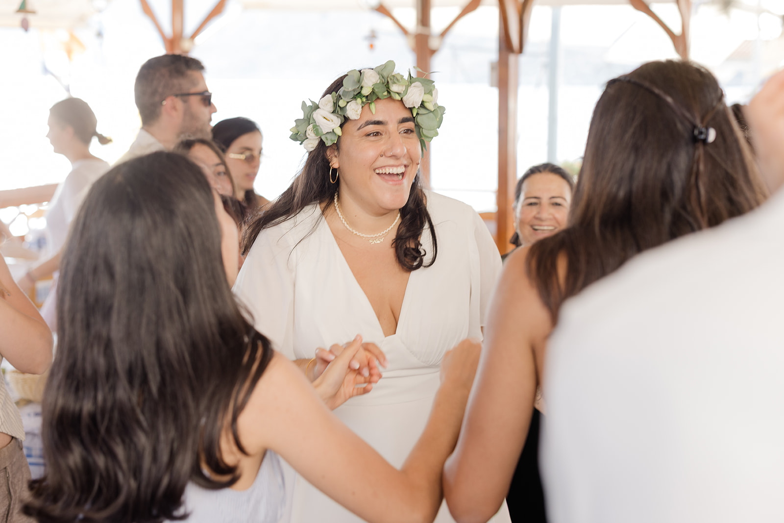 Below you can see the newlyweds and their guests dancing the Sirtaki Zorbas.