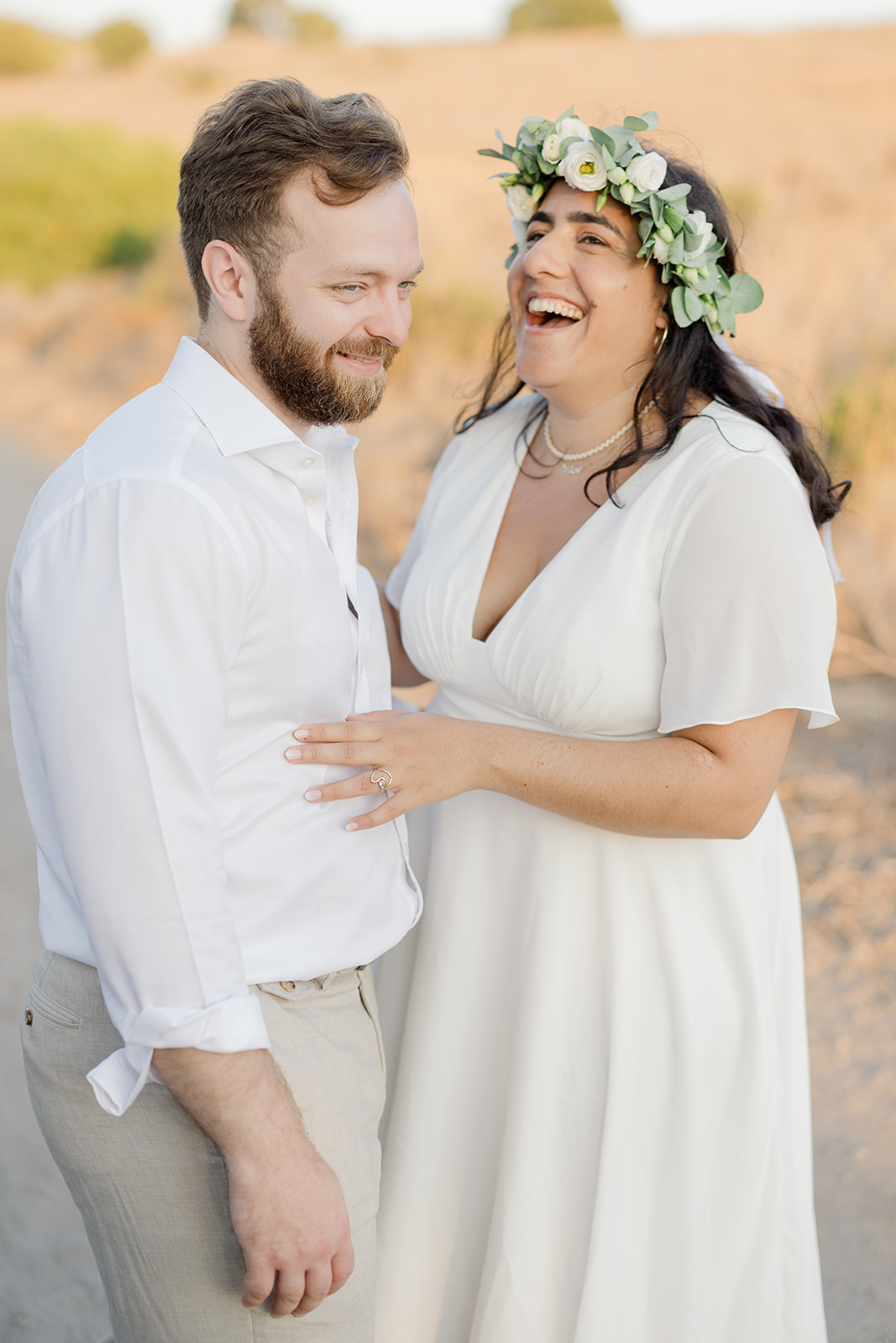 The following day, we planned a portrait session for my newlywed couple in the charming seaside village of Perdika.